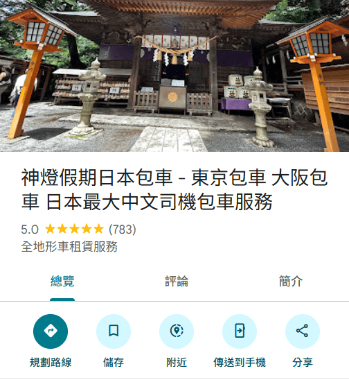- 五星好評最佳日本包車服務:真實的客戶好評,讓你親眼看見。前往 Google 評論