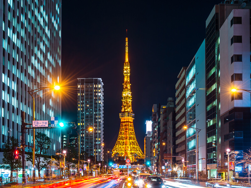 登上 150 公尺的主展望台或 250 公尺的特別展望台,可欣賞東京市區全景。夜晚的東京鐵塔會點燈,橘黃色燈光映照下更顯浪漫,是情侶約會的熱門景點。塔下的芝公園也很適合野餐散步,春天還能賞櫻。